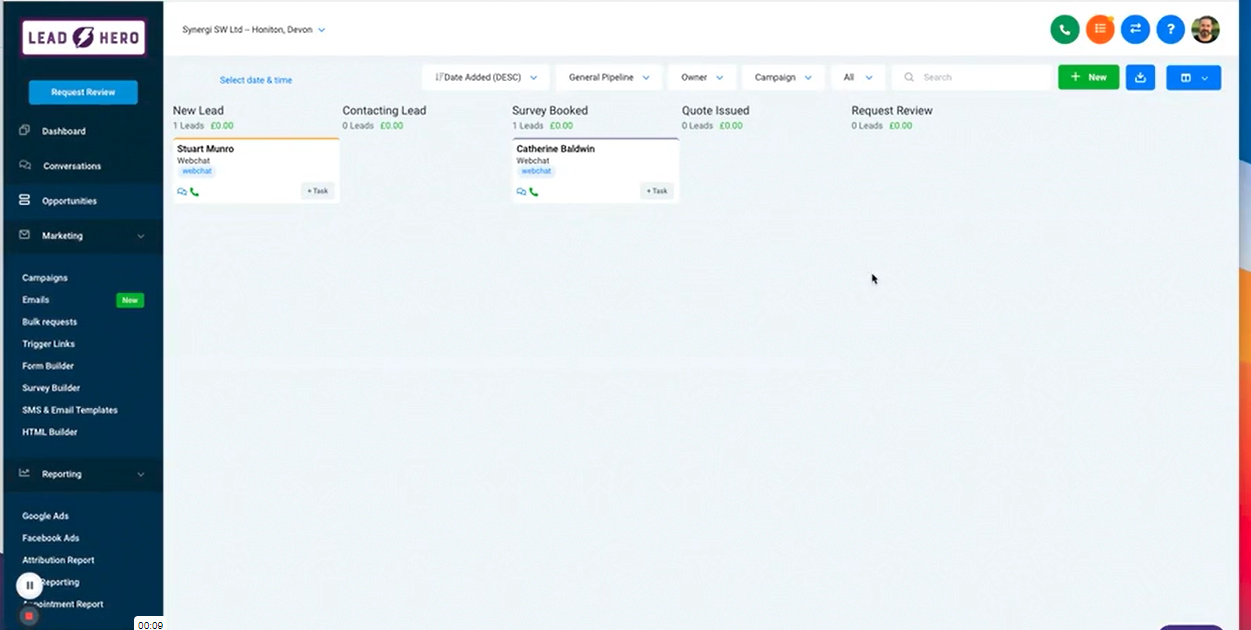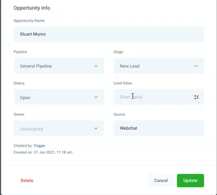 Under Opportunity Info, enter Value in the Lead Value field and click Update to Save