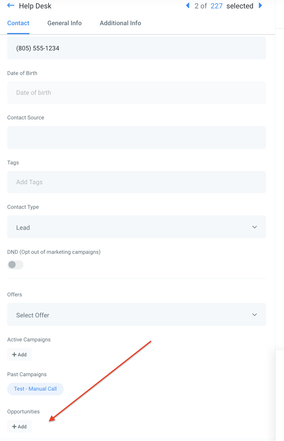 Step 3: How to Add Opportunities in the Contact profile.