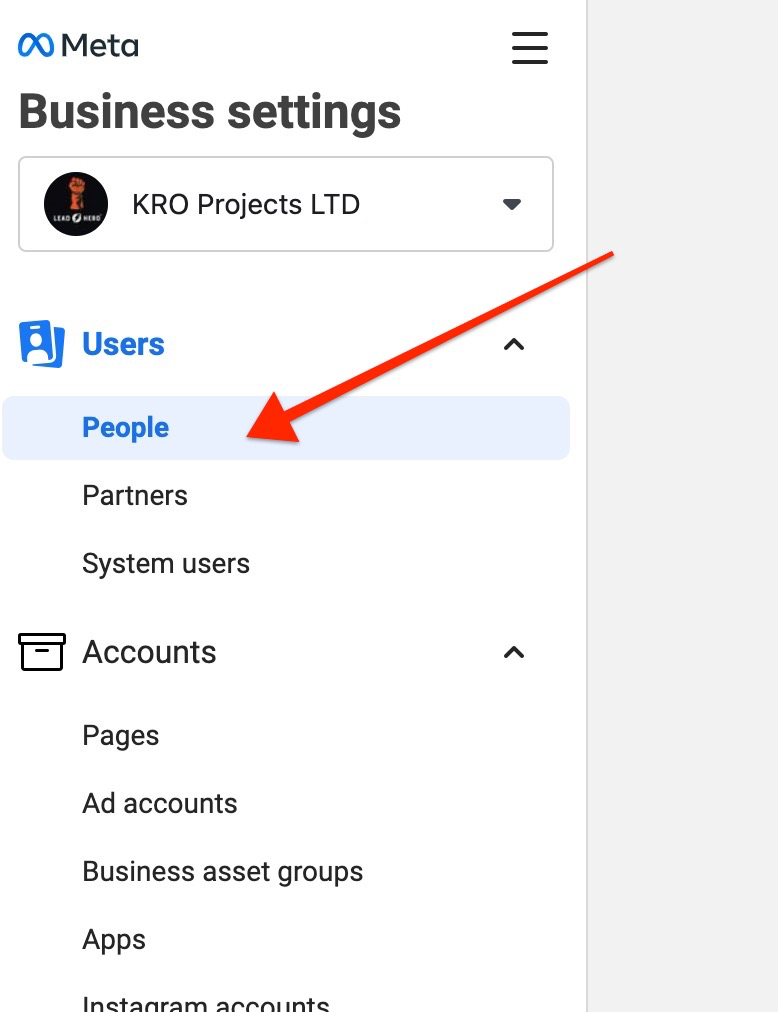 (If you don't have a Business Manager Account, create one) - Click on "People"