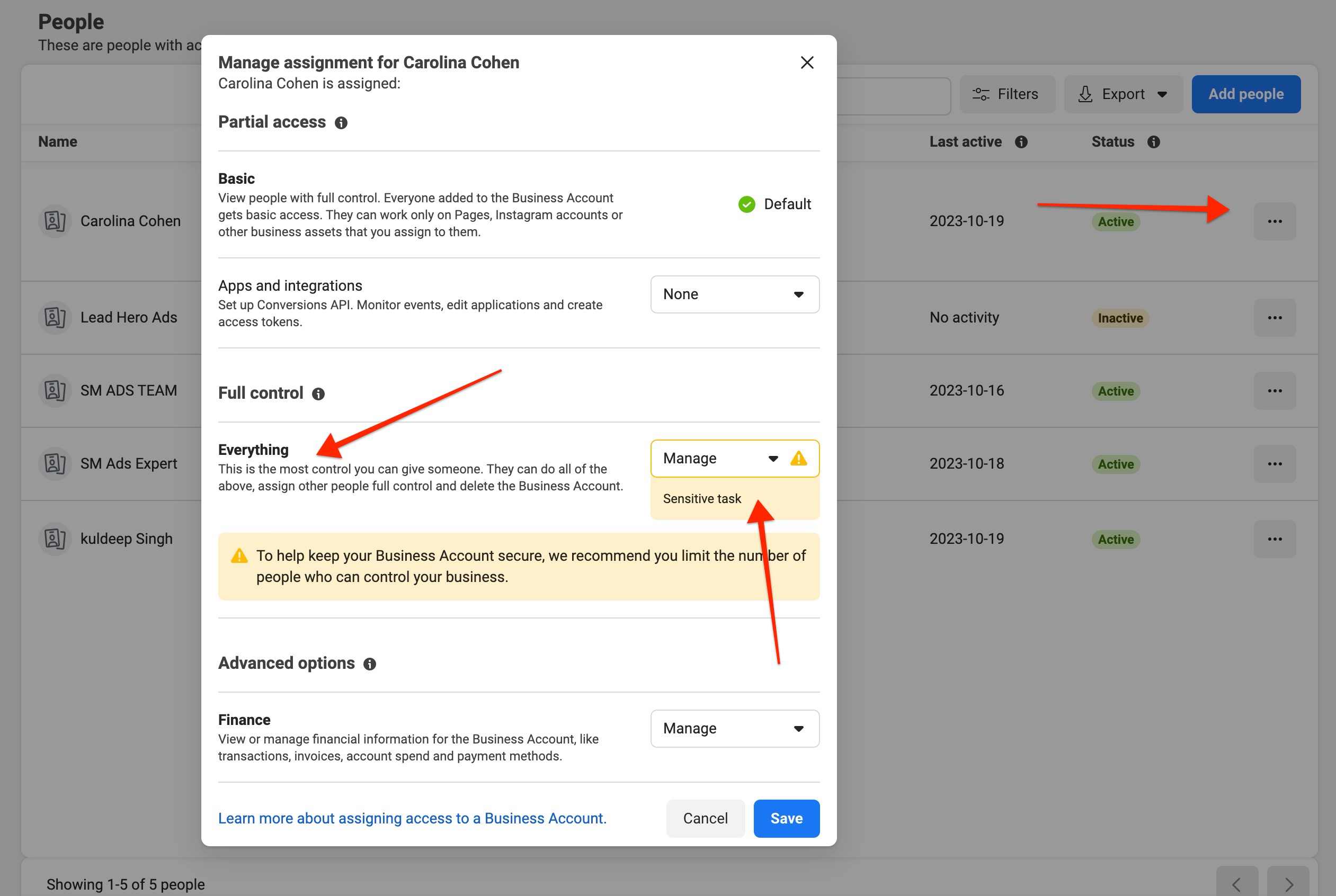 - Invite "leadheroads@gmail.com", and grant them full access.