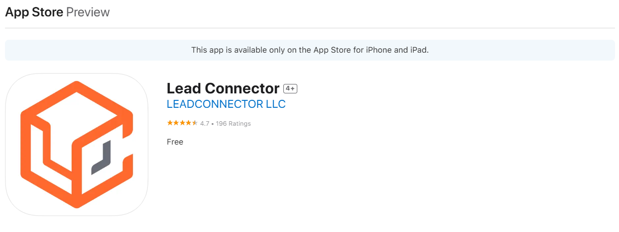 The Lead Connector Mobile app is available from the Apple Store and Google Play Store.