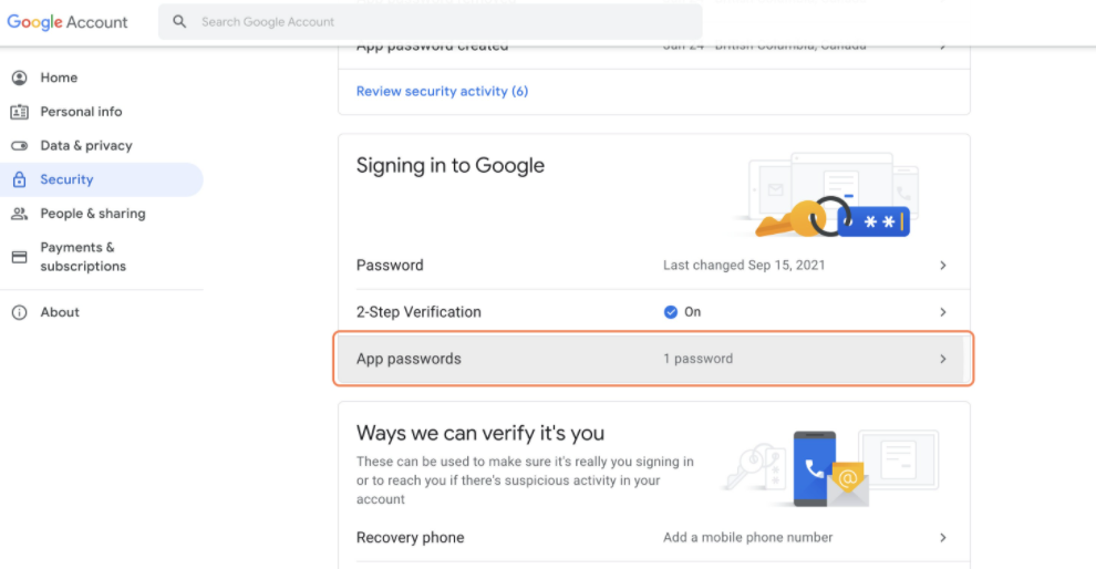 Scroll down further and Click on App passwords